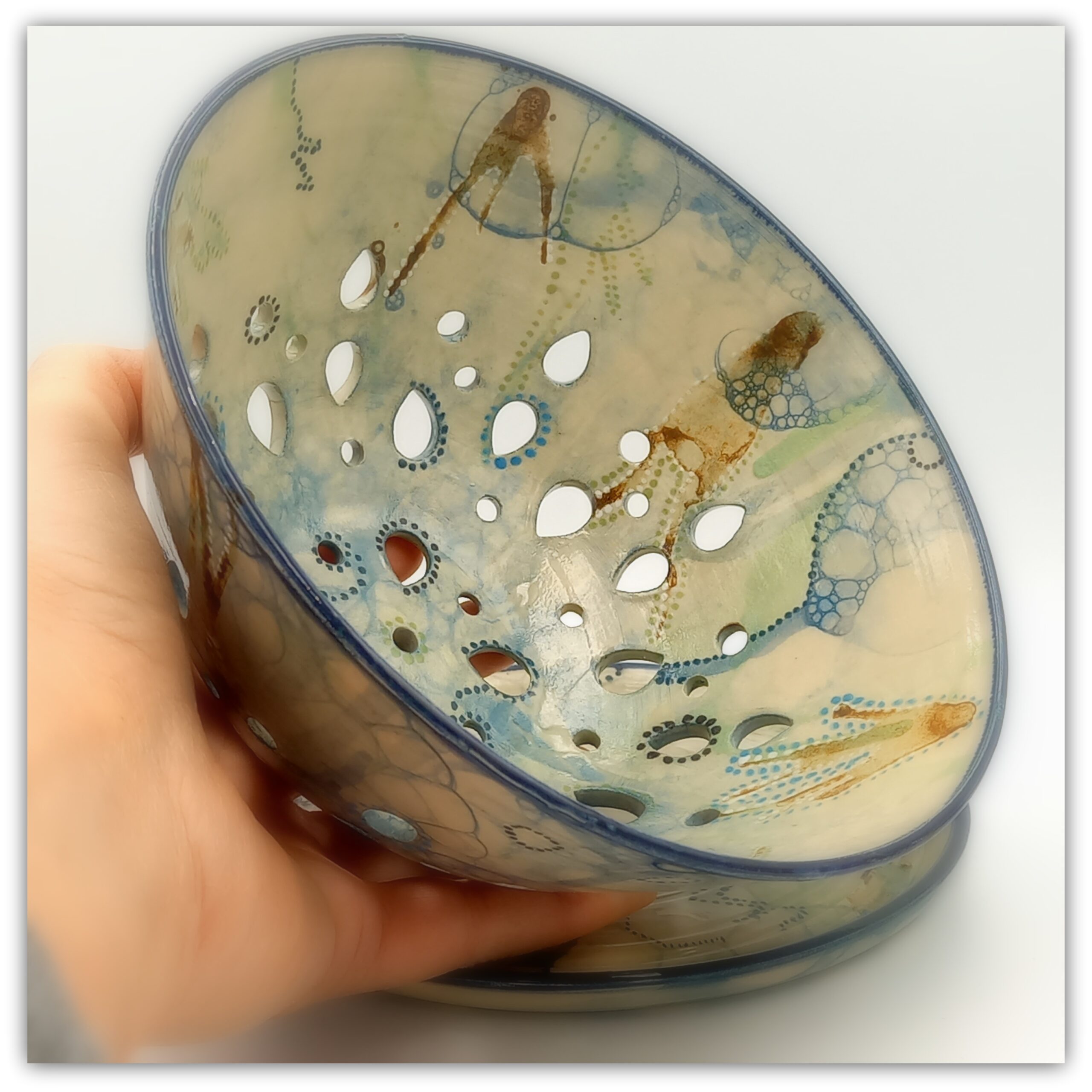 Ideal for rinsing small fruits (strawberries, raspberries, etc.) and letting them drain quietly.