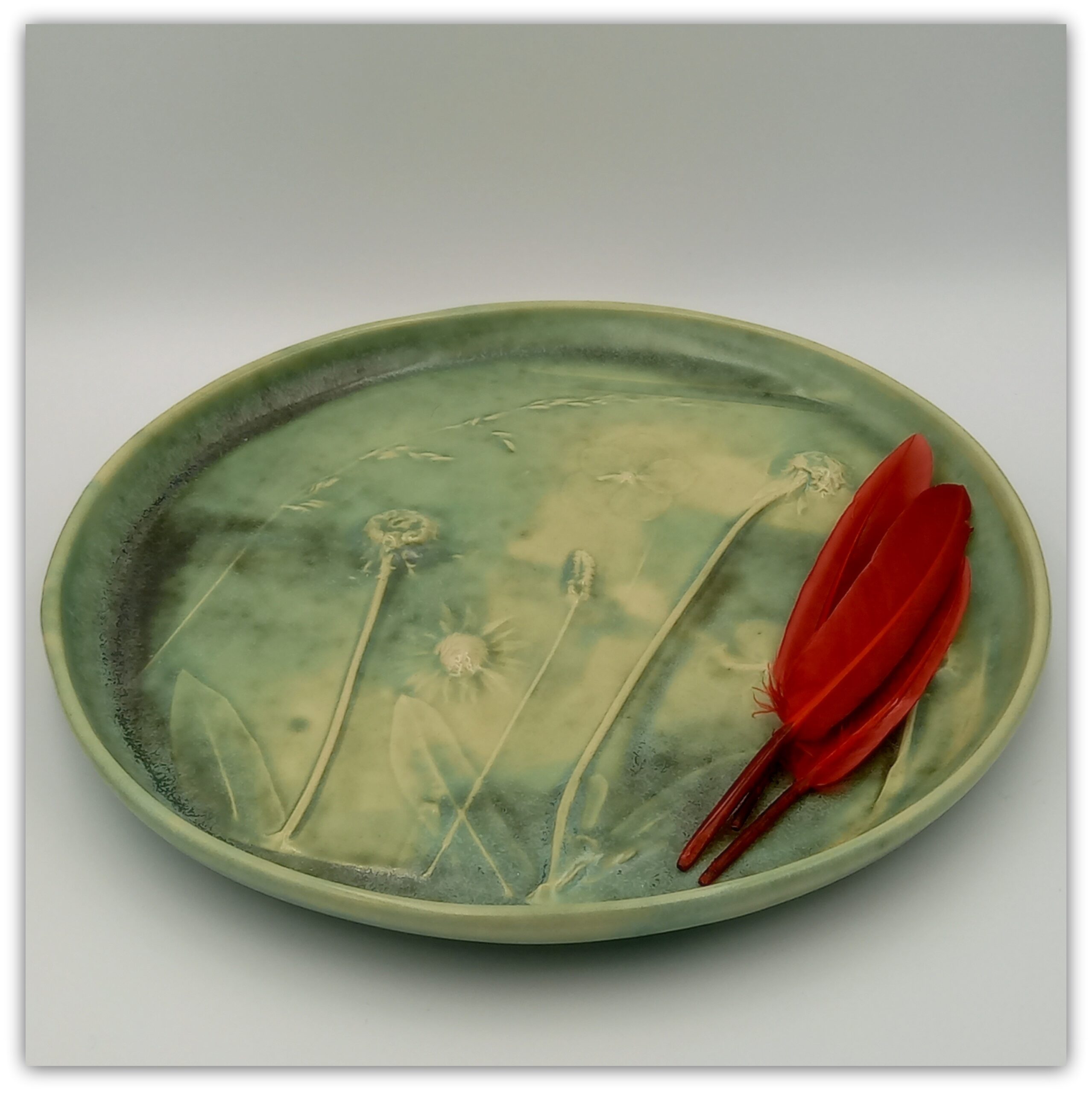 Cream clay, natural plant print , old green glaze, 4 feet