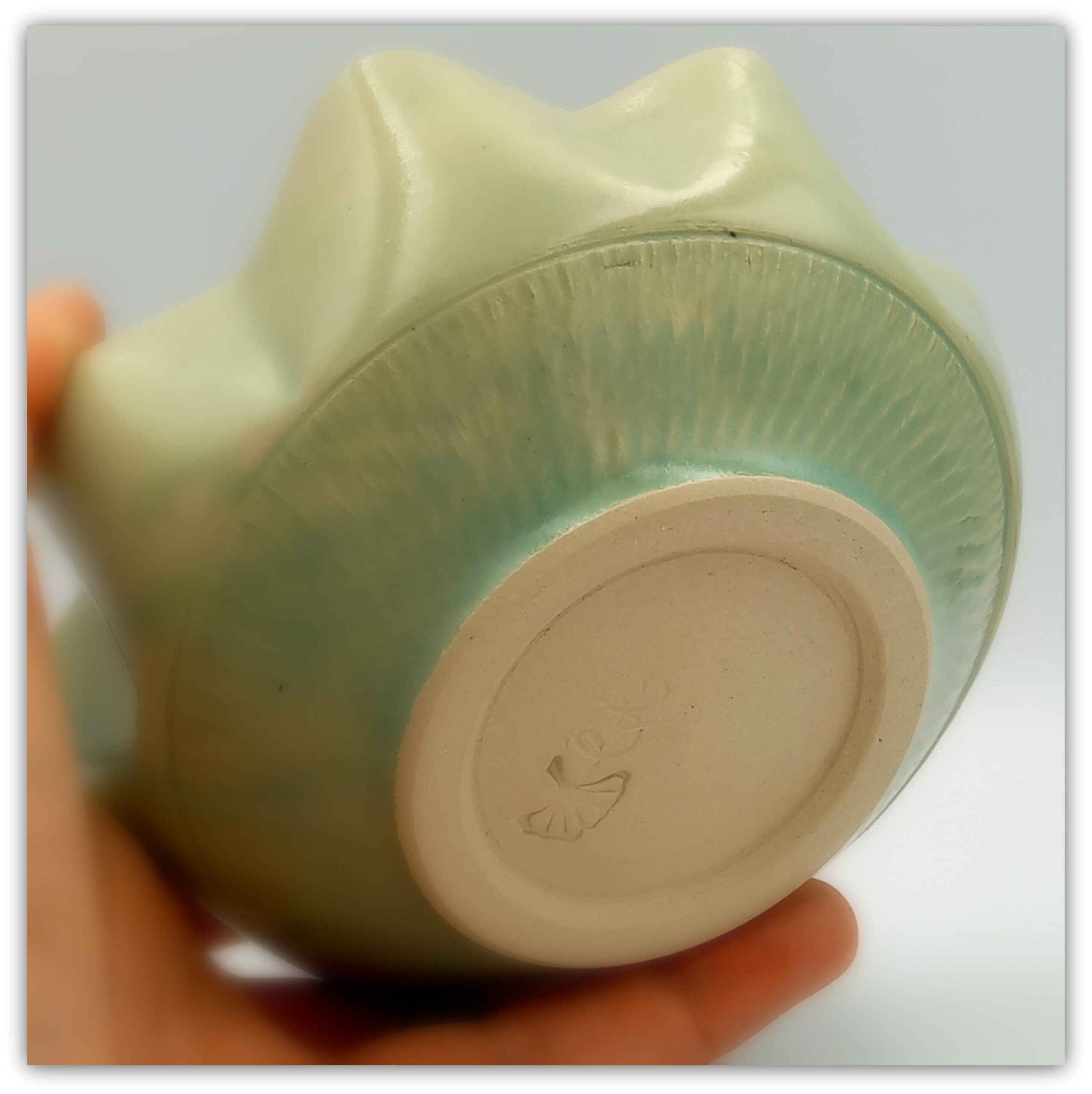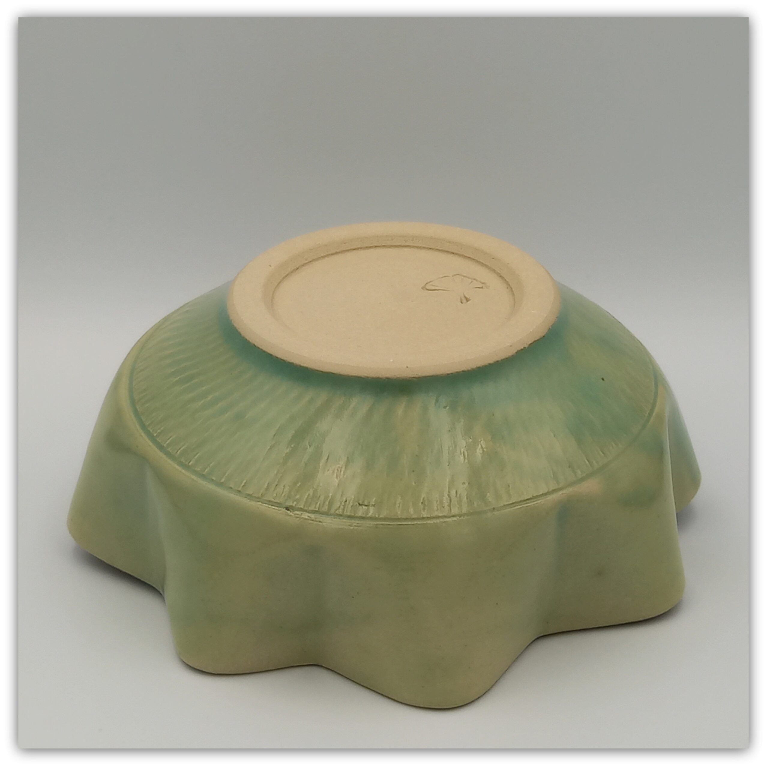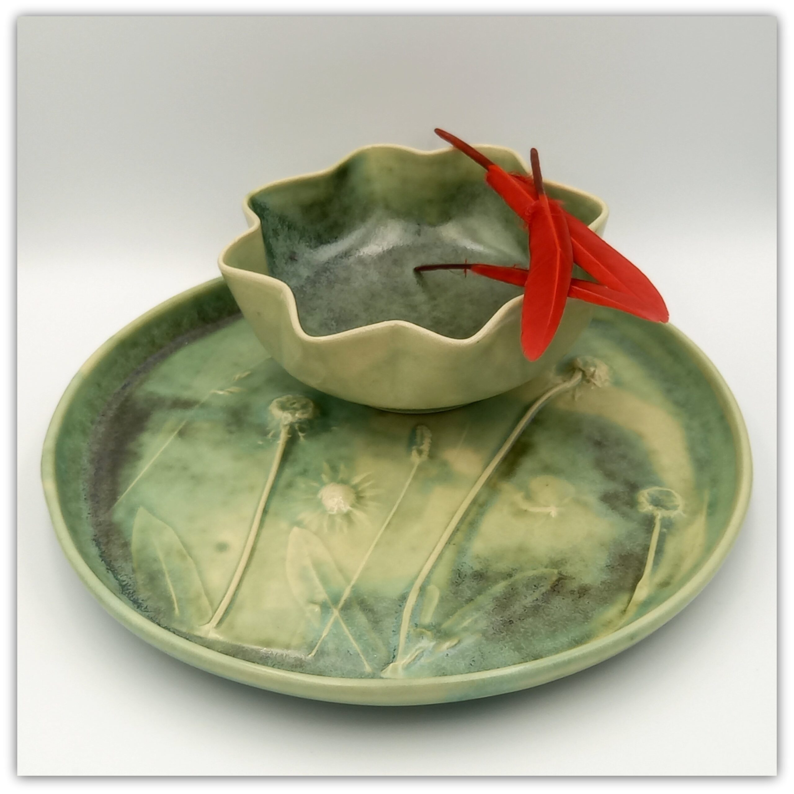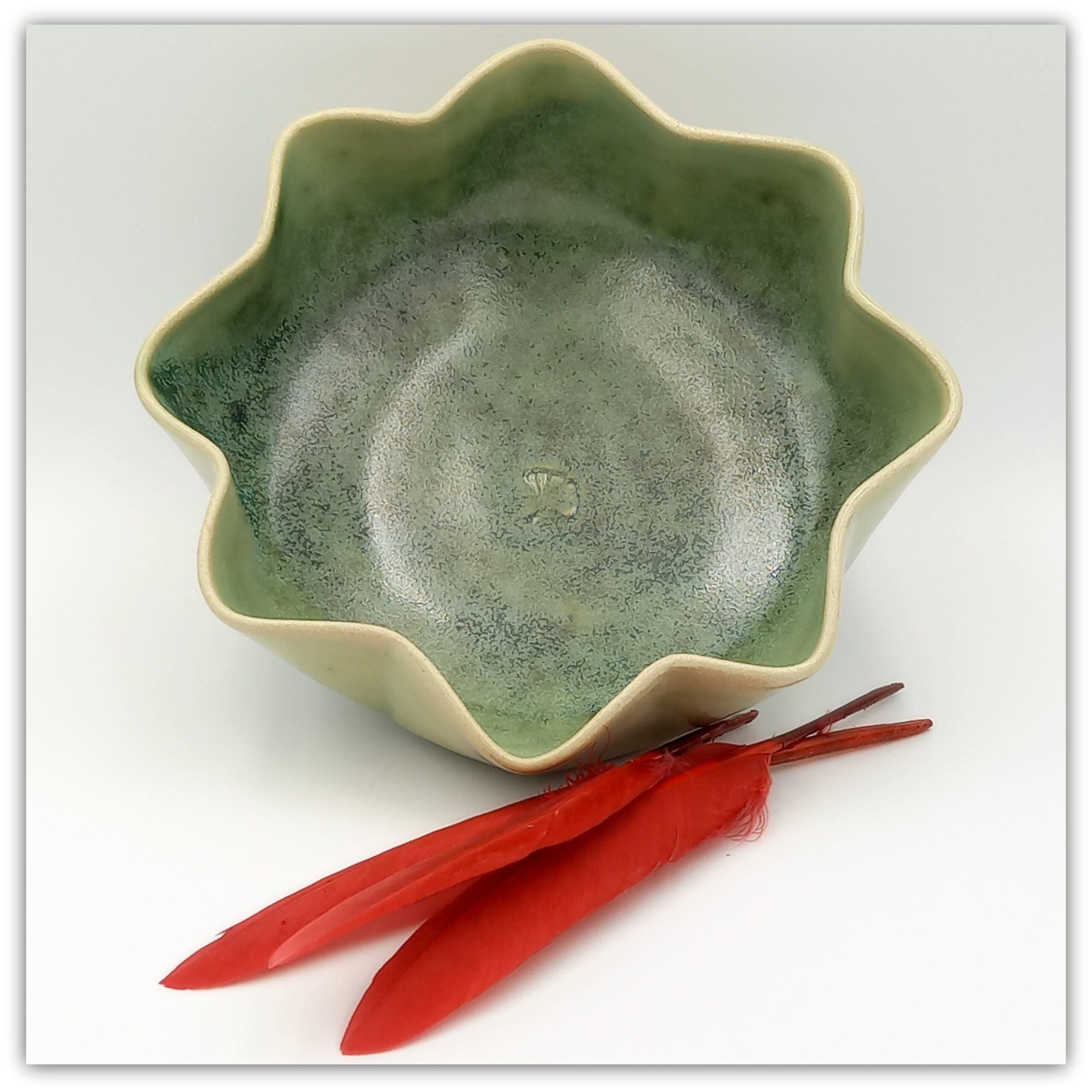Cream clay, natural plant print , old green glaze